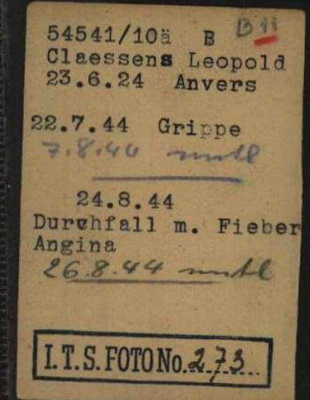 In July 1944, the SS transferred Leopold Claessens to the Harzungen satellite camp. Harzungen was the second largest satellite camp of Dora, with an average of 4,000 prisoners. Since 1944, Dora was run as a separate concentration camp complex called Mittelbau-Dora. Throughout his imprisonment, Leopold Claessens was subjected to the hardest physical labour, working on the extension of the tunnels at Harzungen. He had to loosen rock with a pneumatic hammer and was constantly surrounded by dust and dirt and exposed to the danger of falling rocks. The SS did not provide the prisoners with the necessary protective equipment. He fell ill several times during his imprisonment at the Harzungen satellite camp.