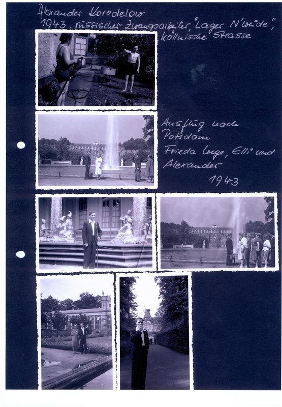 Alexander Korodelow war sehr oft bei Elli Köhns Verwandten zu Besuch, meist am Wochenende und wohl auch in der Woche. Elli Köhn und er gingen zusammen ins Kino und unternahmen Ausflüge – unter anderem nach Potsdam. Um nicht als russischer Zwangsarbeiter erkannt zu werden, versteckte Alexander Korodelow das "Ost"-Abzeichen, das er normalerweise sichtbar an seiner Kleidung tragen musste. Der Besuch nach Potsdam und andere gemeinsame Momente sind in einem Fotoalbum von Elli Köhn festgehalten.